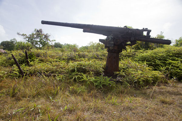 The Japanese WWII Anti-Aircraft Guns near Kolonia, Pohnpei, are historical remnants of the island's wartime past. Strategically positioned on Sokehs Ridge, these artillery pieces were part of Japan's defense system during World War II. Visitors can hike the trail leading to the site, where the guns stand amidst lush greenery, offering panoramic views of the surrounding landscape. The area is also rich in biodiversity, making it a favorite spot for birdwatching. This site provides a unique blend of history and nature, allowing visitors to reflect on the past while enjoying the island's natural beauty.