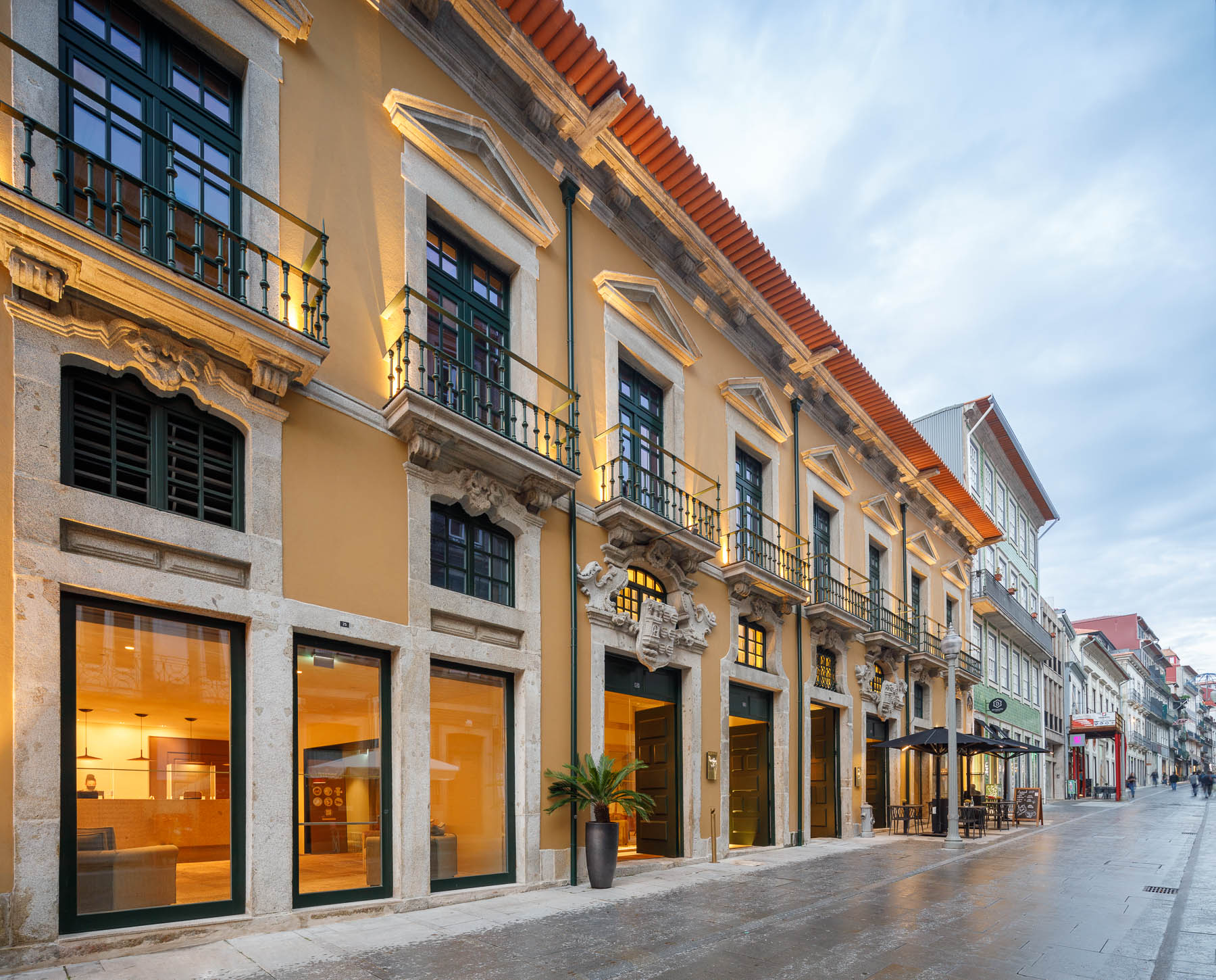 PortoBay Flores is a five-star hotel located in the heart of Porto's historic center, Portugal. Situated on the pedestrian Rua das Flores, next to the Misericórdia Church, it is just a short walk from the Stock Exchange Palace. The hotel blends a 16th-century palace with a modern wing, offering 66 elegantly decorated rooms and suites. It features a restaurant, bar, spa, gym, and an indoor pool bathed in natural light. Additionally, it boasts an 18th-century chapel and a serene landscaped courtyard, providing a peaceful retreat in the city.
