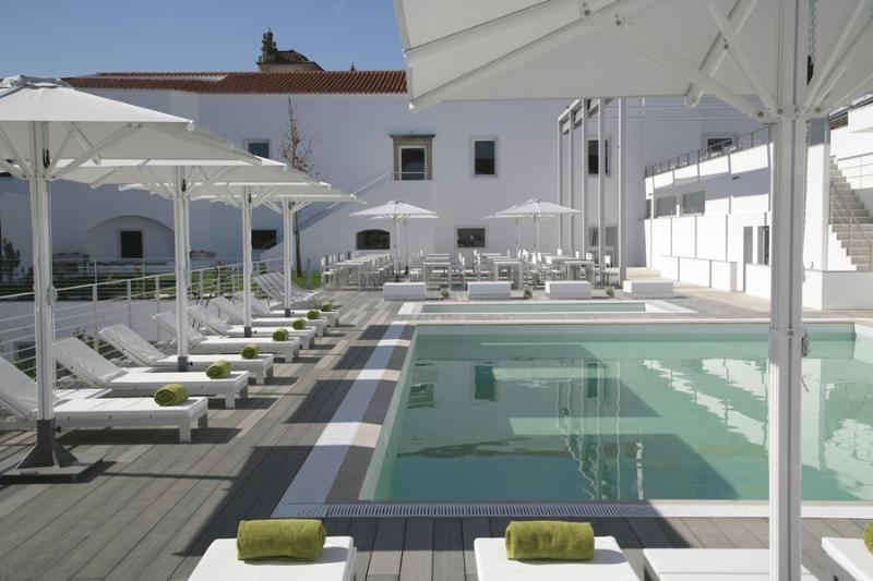 M'AR De AR Aqueduto is a 5-star boutique hotel set in a 16th-century palace, just 600 meters from Évora's Historic Centre. It offers views of the Água de Prata Aqueduct and features a full-service spa, outdoor pool, sauna, and Turkish bath. Its 64 rooms blend contemporary elegance with historic details, including vaulted ceilings and glass partitions separating the bathroom from the bedroom. The Degust' AR restaurant combines Alentejo and Mediterranean flavors, while the bar offers a curated selection of wines.