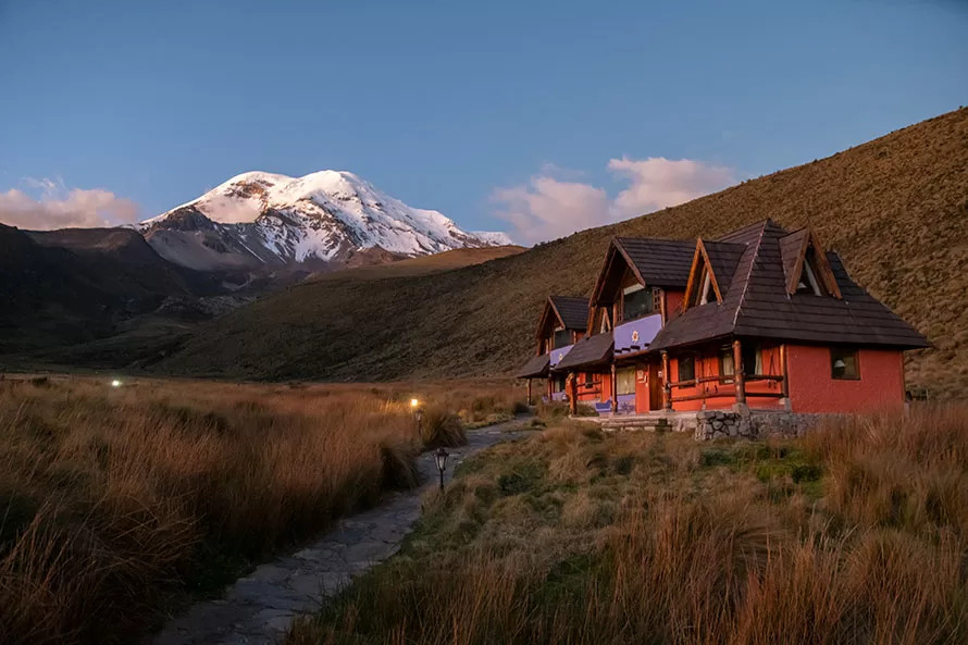 Chimborazo Lodge is located 4,000 meters above sea level, in the heart of the Chimborazo Fauna Production Reserve, at the foot of the majestic Chimborazo volcano. This lodge offers a unique experience with panoramic views, heated rooms, an international cuisine restaurant, and a rustic, cozy atmosphere. Guests can enjoy hikes through the surrounding moors, wildlife spotting of vicuñas and rabbits, and starry skies at night. It is the ideal place for those seeking tranquility, nature, and adventure in the Ecuadorian Andes.