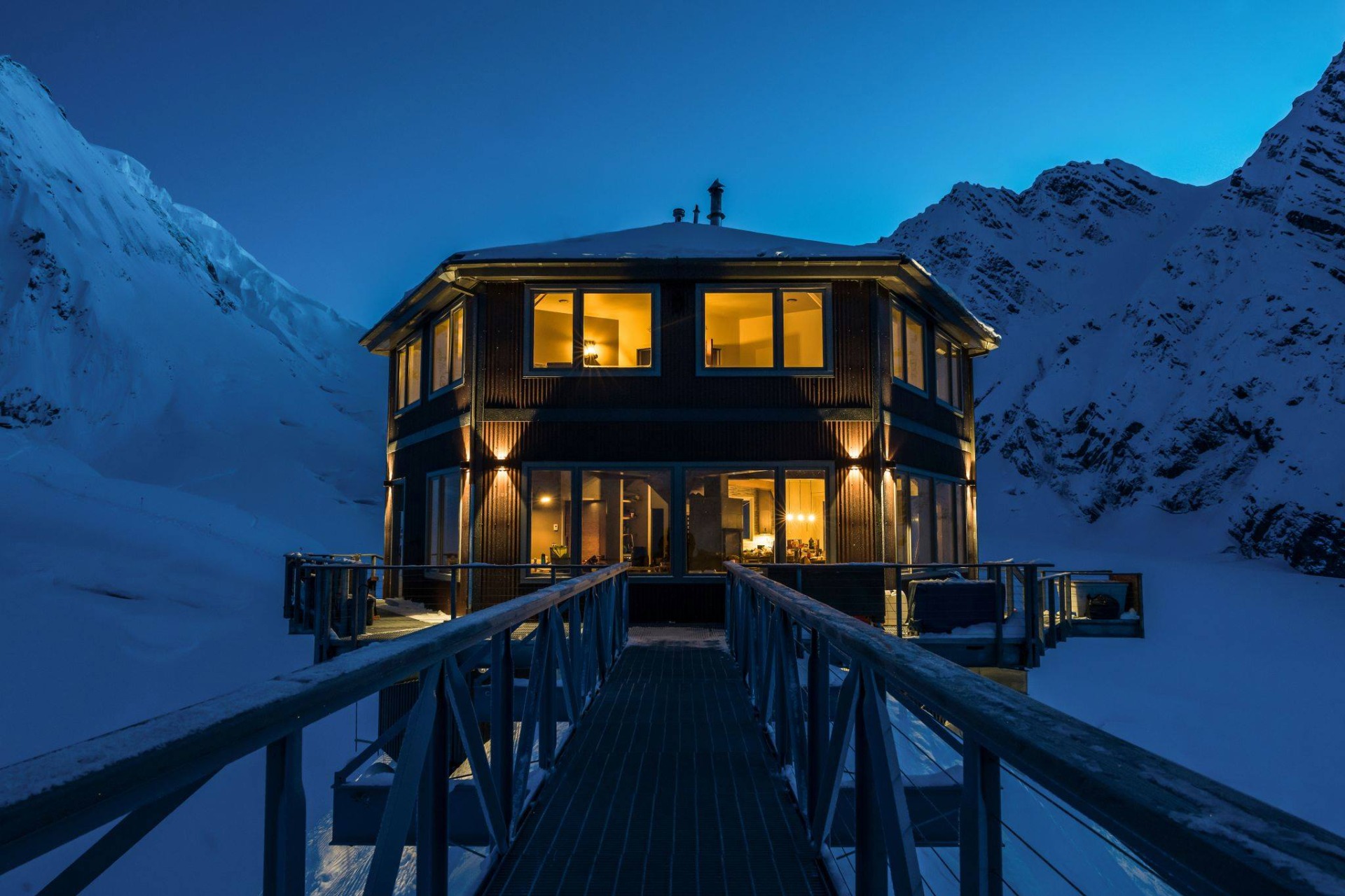 Sheldon Chalet is an exclusive luxury retreat perched 6,000 feet atop a nunatak in Denali National Park, Alaska. Accessible only by helicopter, this five-bedroom chalet accommodates up to 10 guests, offering panoramic views of Denali and the surrounding glaciers. Guests enjoy all-inclusive services, including gourmet meals, guided glacier treks, and aurora viewing from the helipad. The chalet's hexagonal design ensures uninterrupted vistas, and its eco-conscious construction blends seamlessly with the rugged Alaskan landscape. This remote sanctuary provides an unparalleled wilderness experience, combining adventure with luxury in one of the world's most pristine environments.