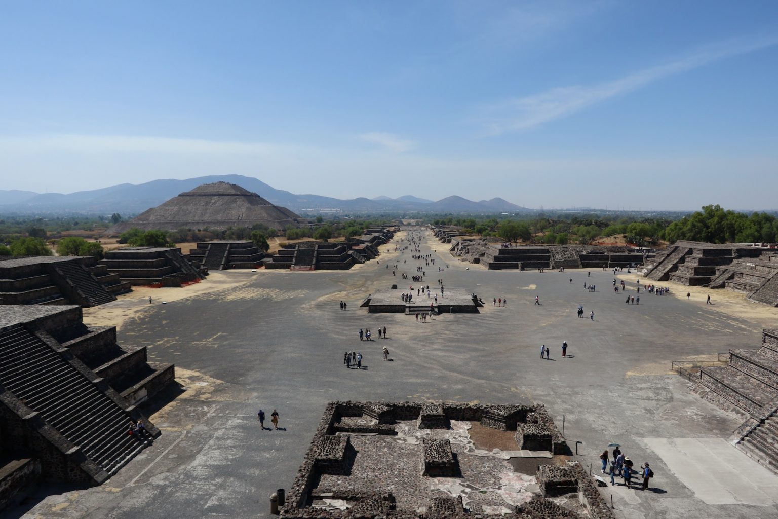 Teotihuacan, located in the Valley of Mexico, was one of the largest cities of the ancient world, flourishing between the 1st and 7th centuries AD. Its Nahuatl name means "the place where the gods were created." The city is renowned for its monumental urban layout, the Avenue of the Dead, and the Pyramids of the Sun and Moon, which served as ceremonial and political centers. Although its original builders remain unknown, Teotihuacan's cultural, religious, and commercial influence spread across much of Mesoamerica, shaping later civilizations such as the Mexica.