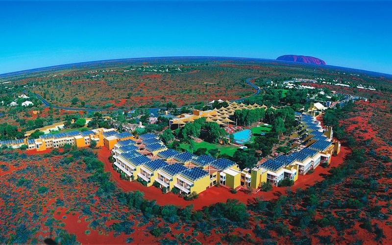 Sails in the Desert is an elegant hotel located in the heart of UluruāKata Tjuta. It features modern architecture inspired by desert sails and interiors enriched with Aboriginal artwork. The property offers spacious rooms, a pool, spa, restaurants, and access to local cultural experiences. Its atmosphere blends comfort with a strong sense of place. The hotel serves as an excellent base for exploring Uluru, joining guided walks, watching sunrise views, and learning about Anangu traditions.