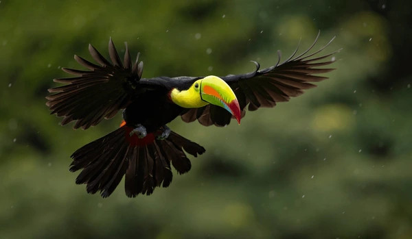 The Pacuare River in Costa Rica hosts a rich birdlife. Notable residents include the toucan, which prefers humid forests and clearings with abundant fruit, and the quetzal, which inhabits high cloud forests with mature trees and epiphytes. Hummingbirds, tanagers, and herons are also common. Riparian vegetation provides shelter and food, while surrounding forests offer nesting and resting areas. These ecosystems are essential for bird reproduction and migration, preserving the biodiversity and natural beauty of the Pacuare.
