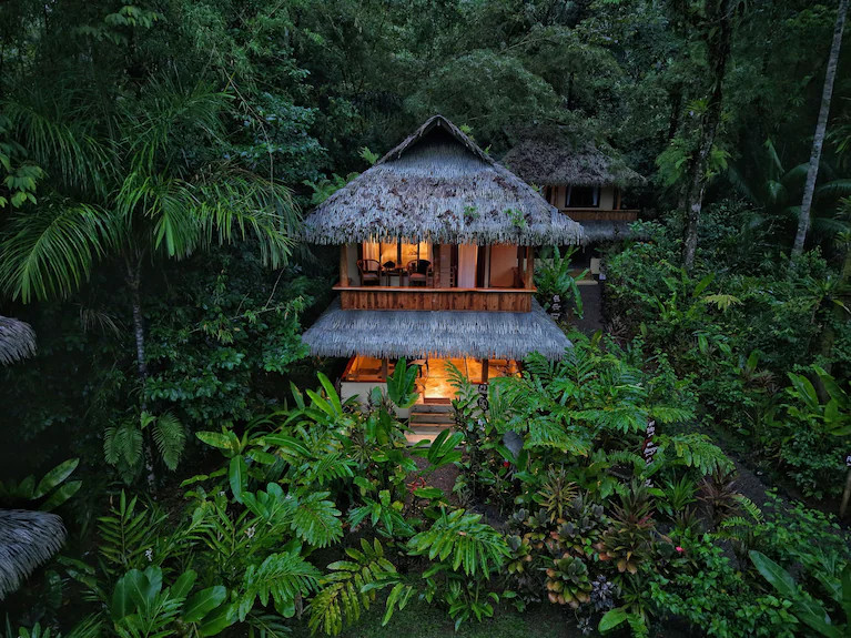 Copa del Ćrbol Resort, located in BahĆa Drake, Puntarenas, Costa Rica, offers a unique experience in the heart of the rainforest. Surrounded by lush flora such as palms and heliconias, and rich fauna including monkeys, sloths, toucans, and macaws, it's perfect for nature lovers. Guests can enjoy tours to Corcovado National Park, scuba diving at CaƱo Island, guided hikes, and kayaking through mangroves. A true ecological paradise by the sea.