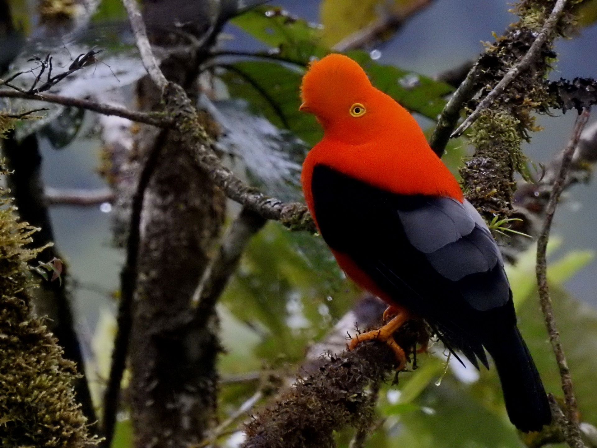 El gallito de las rocas peruano (Rupicola peruvianus) es un ave emblemática de los bosques nublados cercanos a Machu Picchu. Los machos destacan por su plumaje rojo intenso y una cresta prominente. Habita en acantilados húmedos y zonas densas de vegetación donde construye nidos en paredes rocosas. Prefiere áreas con abundante fruta y sombra. Durante el cortejo, los machos realizan exhibiciones llamativas en los "leks", atrayendo a las hembras con saltos y sonidos vibrantes.