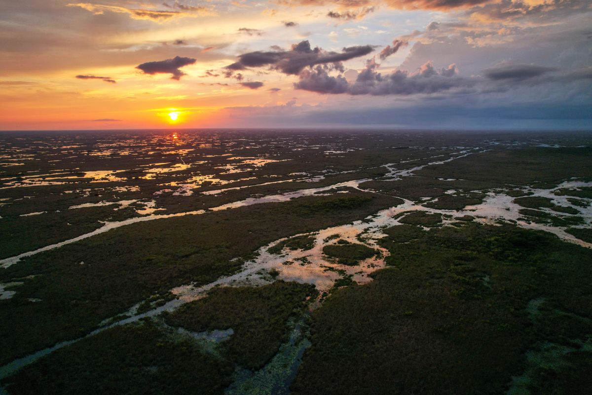 El Parque Nacional de los Everglades, en el sur de Florida, es uno de los ecosistemas de humedales más grandes y singulares del mundo. Protege ríos de aguas lentas, manglares, marismas y praderas inundadas que albergan una extraordinaria biodiversidad. Es hogar de caimanes, cocodrilos americanos, manatíes, panteras de Florida y cientos de especies de aves. El parque es vital para la conservación del agua dulce, la vida silvestre y el equilibrio ecológico de la región.