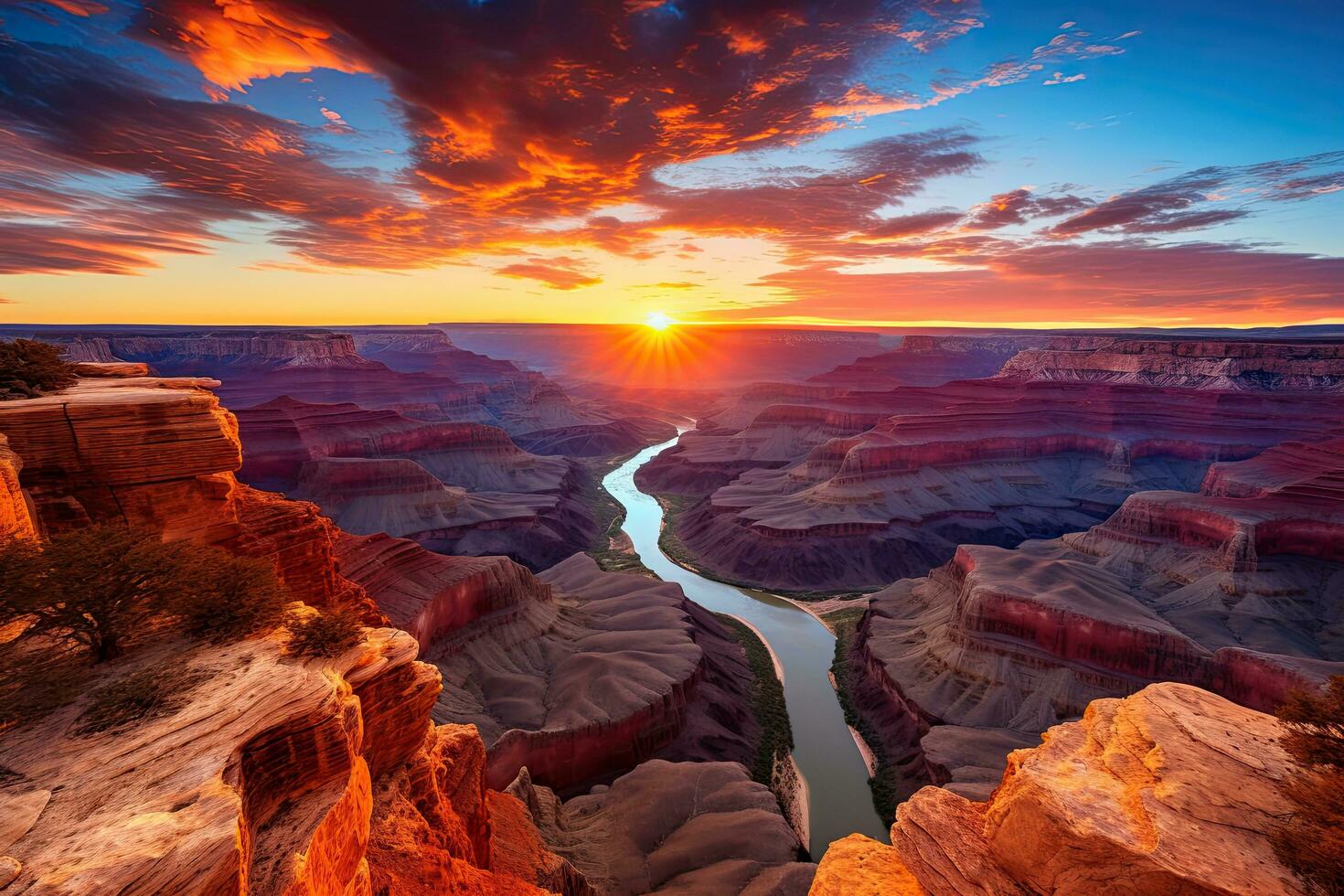 El Gran Cañón, ubicado en el norte de Arizona, es una de las maravillas naturales más impresionantes del mundo. Esculpido durante millones de años por el río Colorado, alcanza hasta 1,857 metros de profundidad y más de 440 kilómetros de longitud. Sus estratos rocosos revelan una historia geológica que abarca casi dos mil millones de años, con tonalidades que varían del rojo intenso al ocre y violeta según la luz del día. El área alberga una rica biodiversidad y ha sido hogar ancestral de pueblos indígenas como los Havasupai y Hopi. Es Patrimonio Mundial de la UNESCO y símbolo del paisaje estadounidense.