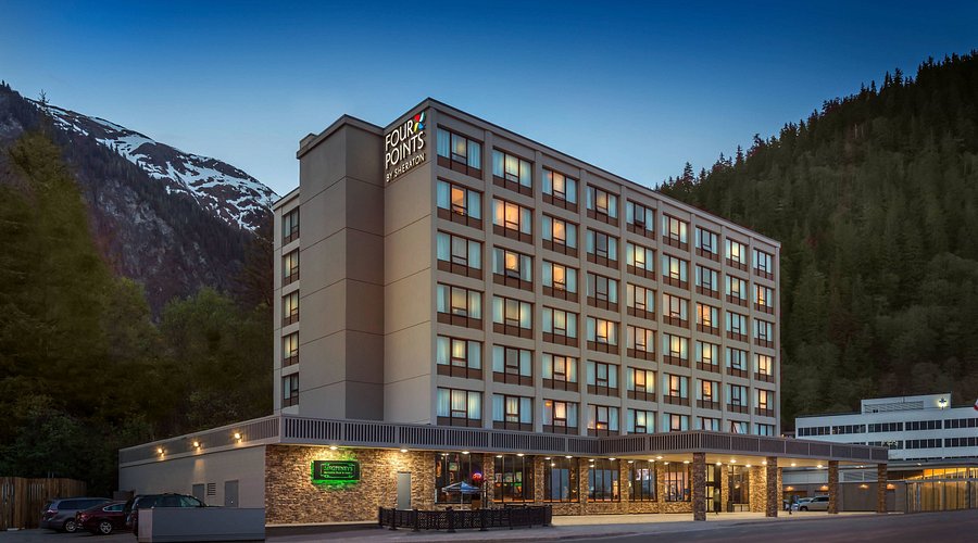 El Hotel Four Points by Sheraton Juneau se ubica en el corazón del centro histórico, a pocos pasos del puerto, tiendas locales y atracciones culturales. Ofrece habitaciones amplias y confortables, equipadas con camas de alta calidad, escritorio de trabajo, wifi gratuito y vistas a la ciudad o a las montañas. El hotel cuenta con restaurante, bar, gimnasio y espacios para reuniones. Su servicio es eficiente y acogedor, ideal tanto para viajeros de negocios como para turistas que desean explorar la belleza natural de Alaska.